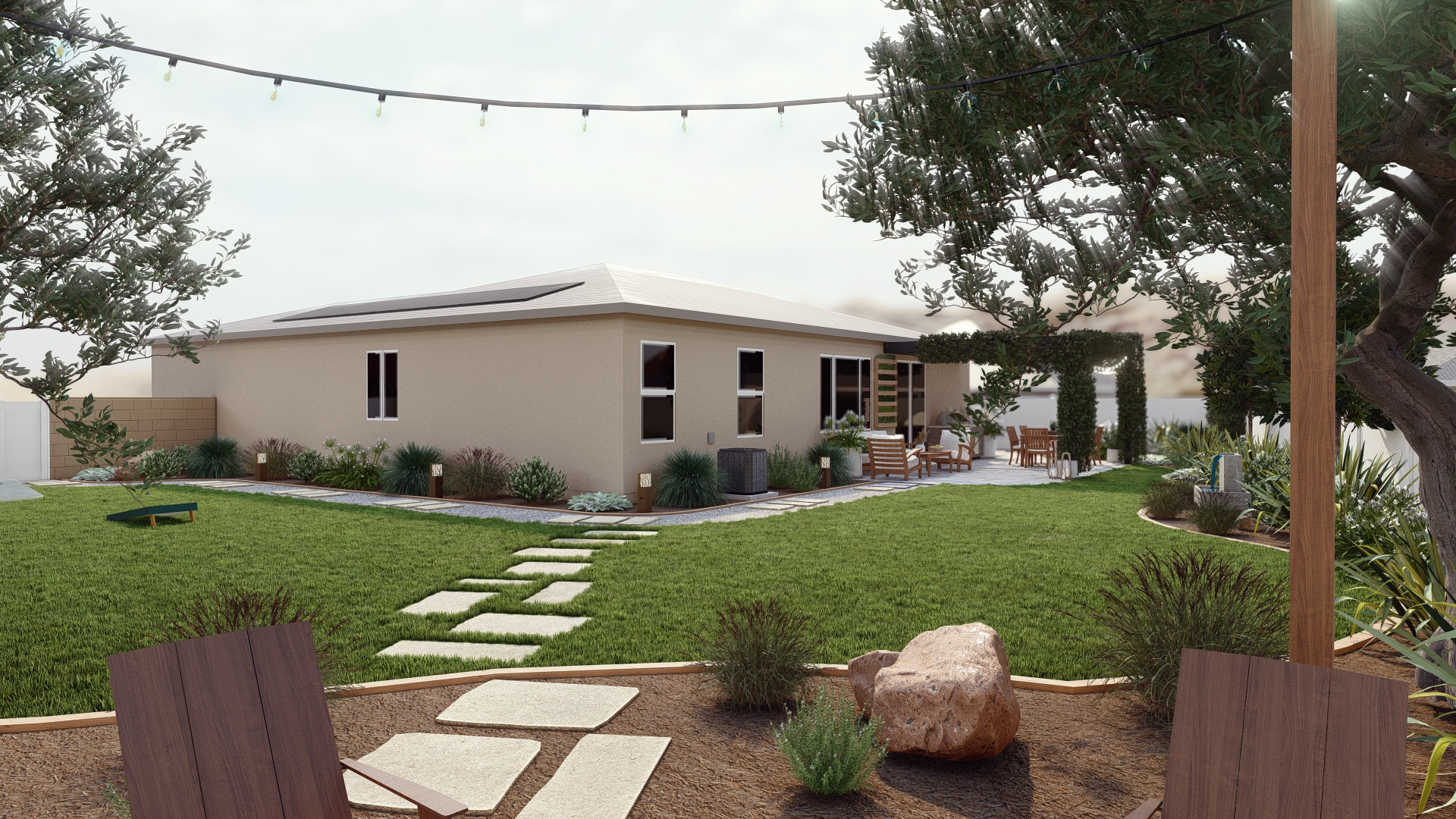 California Outdoor Living Escape blends functional design with modern comfort. Featuring a shaded pergola, open lawn, and versatile play and fitness areas, this backyard creates the perfect balance of relaxation and recreation for the whole family.