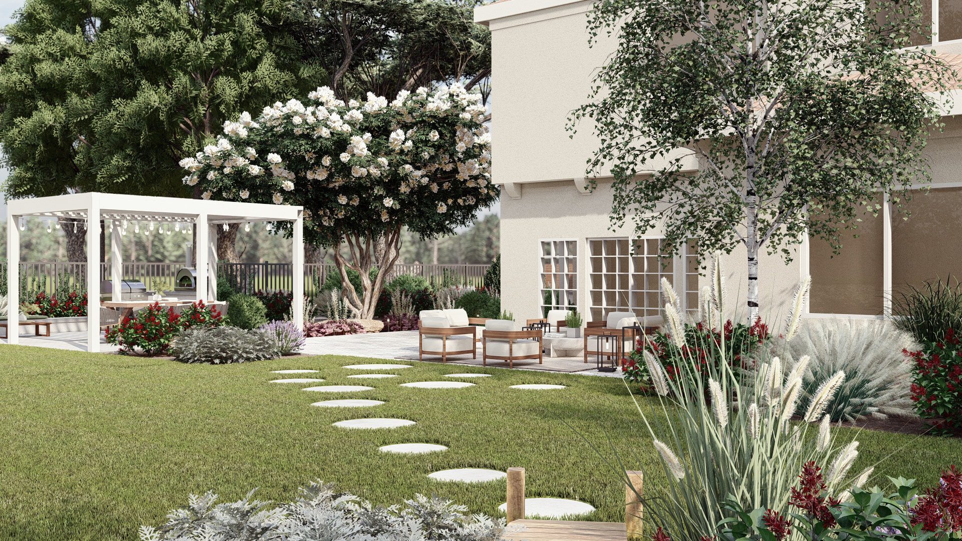 This project masterfully handles the challenges of the Nevada environment, delivering an expansive, contemporary outdoor living space that’s as high on style as it is low on maintenance. The design uses defined zones and modern, clean lines to organize the large yard into multiple entertainment hubs. The desert-friendly landscape palette, combined with elegant hardscaping, creates a luxurious yet sustainable environment for large gatherings and everyday life.