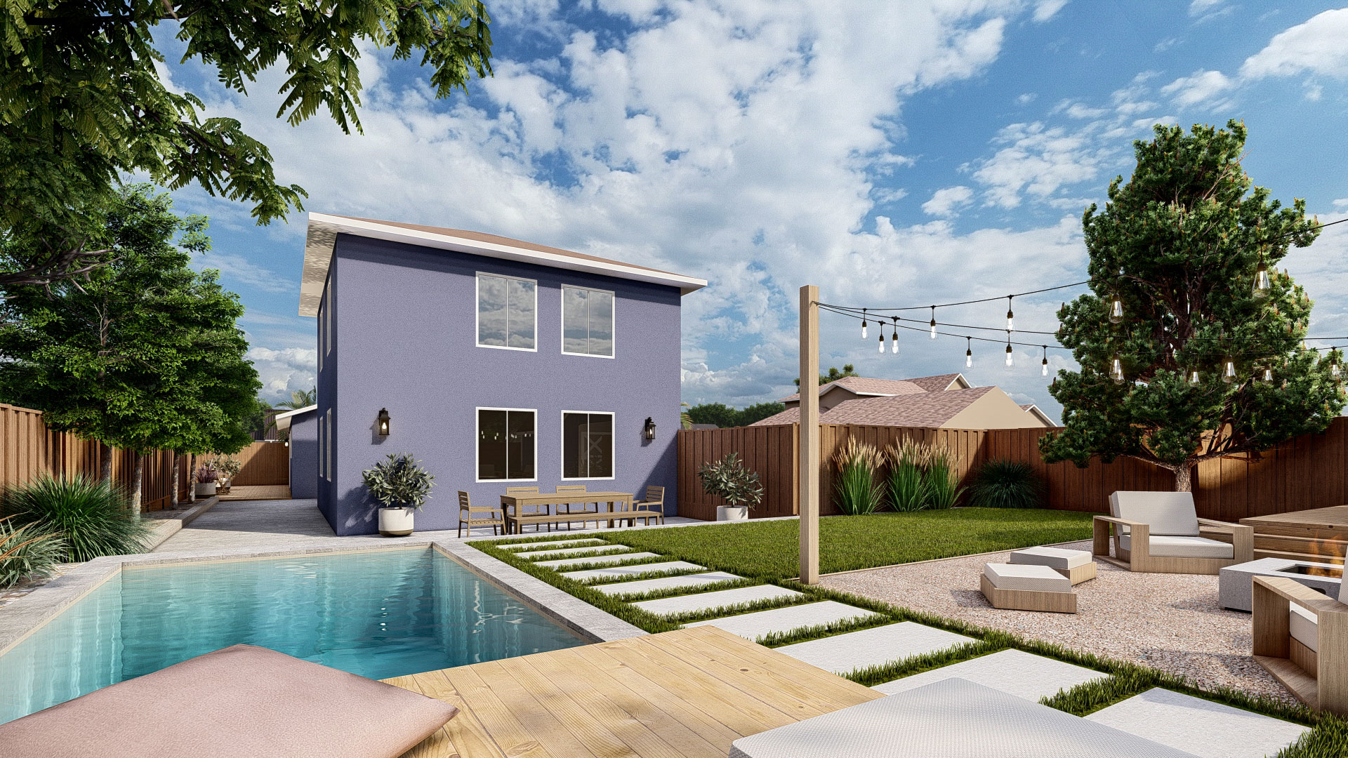 - Resort-Style Swimming Pool: A clean-lined, rectangular pool with a surrounding coping and ample lounging space, providing a refreshing centerpiece for the backyard.