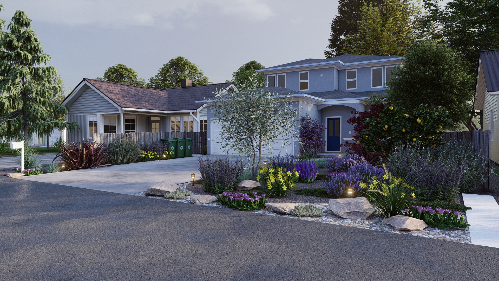 This front yard project focuses on turning the entryway into a peaceful and inviting garden retreat. With a mix of lush greenery, vibrant seasonal blooms, and carefully placed lighting, the design creates a welcoming first impression that blends beauty with functionality.
