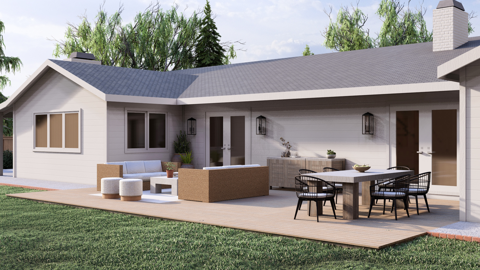 - Modern Entertaining Deck: A spacious deck seamlessly extends the indoors, providing ample room for both a dining area and a relaxed lounge space perfect for hosting large gatherings.