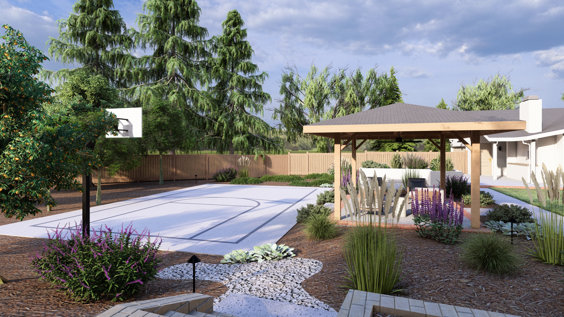 - Integrated Sports Court: A dedicated, multi-use court provides a durable surface for basketball and other activities, turning a portion of the yard into a functional recreational zone.