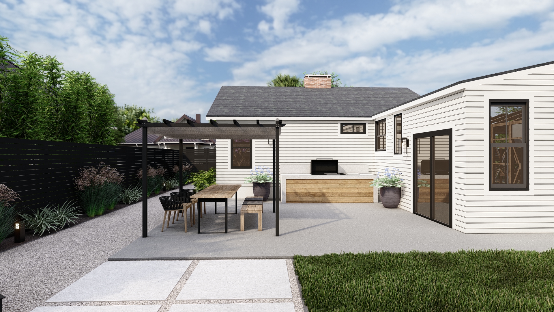 - Lush, Layered Plantings: A mix of ornamental grasses and flowering trees frames the entire space, softening the hard lines of the deck and patios, and enhancing the overall sense of tranquility.