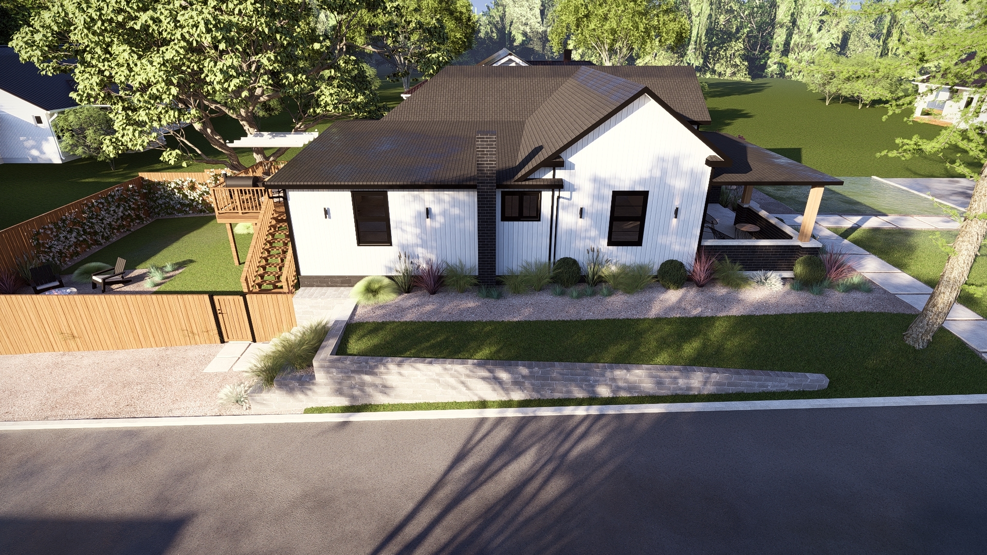 This project skillfully blends the welcoming ethos of Southern design with a sleek, contemporary farmhouse aesthetic. The landscape provides multiple functional areas for dining, lounging, and gathering, ensuring every inch of the yard is utilized. Using natural wood tones, structured hardscaping, and lush, layered plantings, this design establishes a stylish yet relaxed atmosphere that offers true modern comfort for year-round enjoyment.