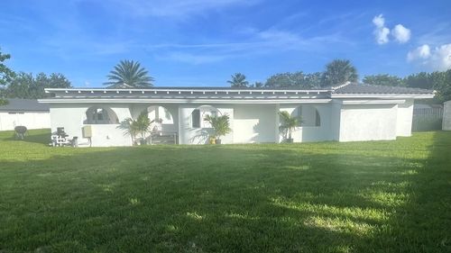 This project delivers a full-property landscape and architectural renovation in Florida, establishing a cohesive, minimalist resort feel. The design focuses on clean geometry and a monochromatic palette of white stucco, light pavers, and crisp trim, contrasting sharply with the warmth of the dark wood ceiling beams and subtle tropical planting. The integrated poolside pavilion acts as a stunning extension of the home, featuring elegant archways that frame views of the garden and define functional areas for grand-scale entertaining.