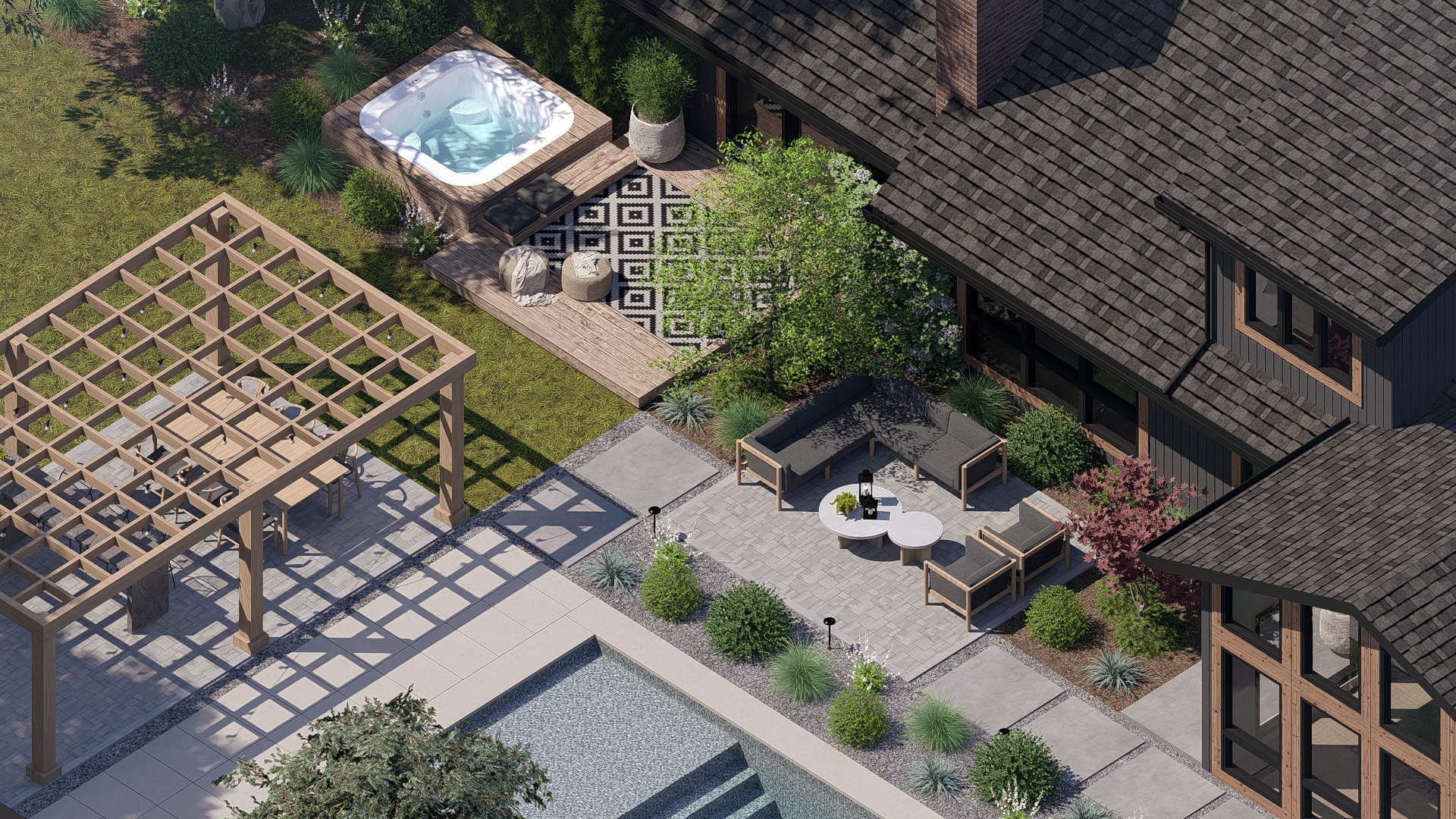 - Custom Wood Planters: Sleek, low-profile wooden retaining walls and planters are integrated into the design, adding warmth and structure while providing designated beds for varied plantings.
