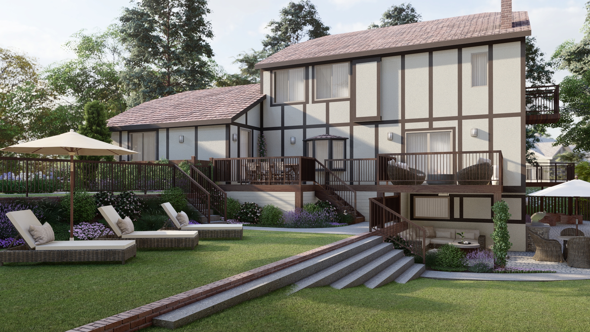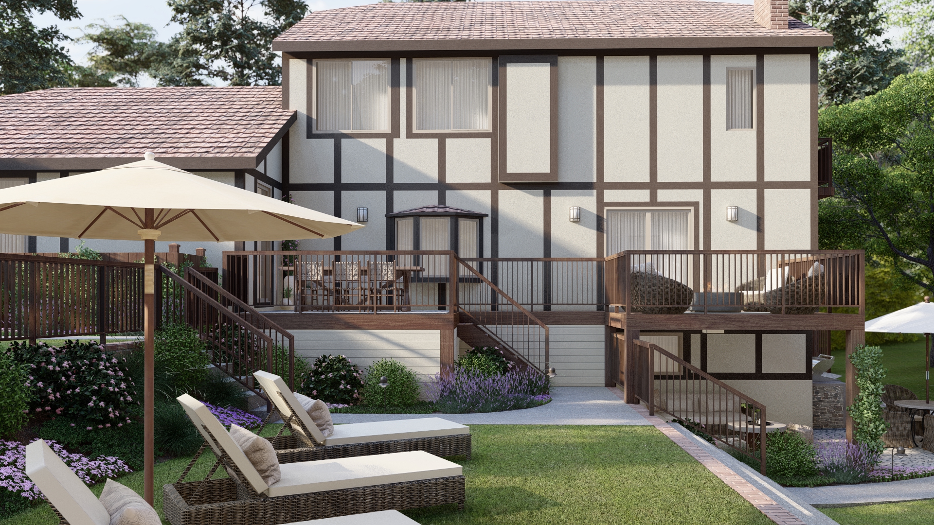 This extensive backyard remodel, titled The Vertical Garden: Multi-Level Outdoor Living, was designed to harmonize with the home's distinctive Tudor architecture while maximizing utility and visual appeal across multiple elevations. The result is a lush, tiered sanctuary that feels like a natural extension of the indoors, perfect for both tranquil afternoons and dynamic gatherings.