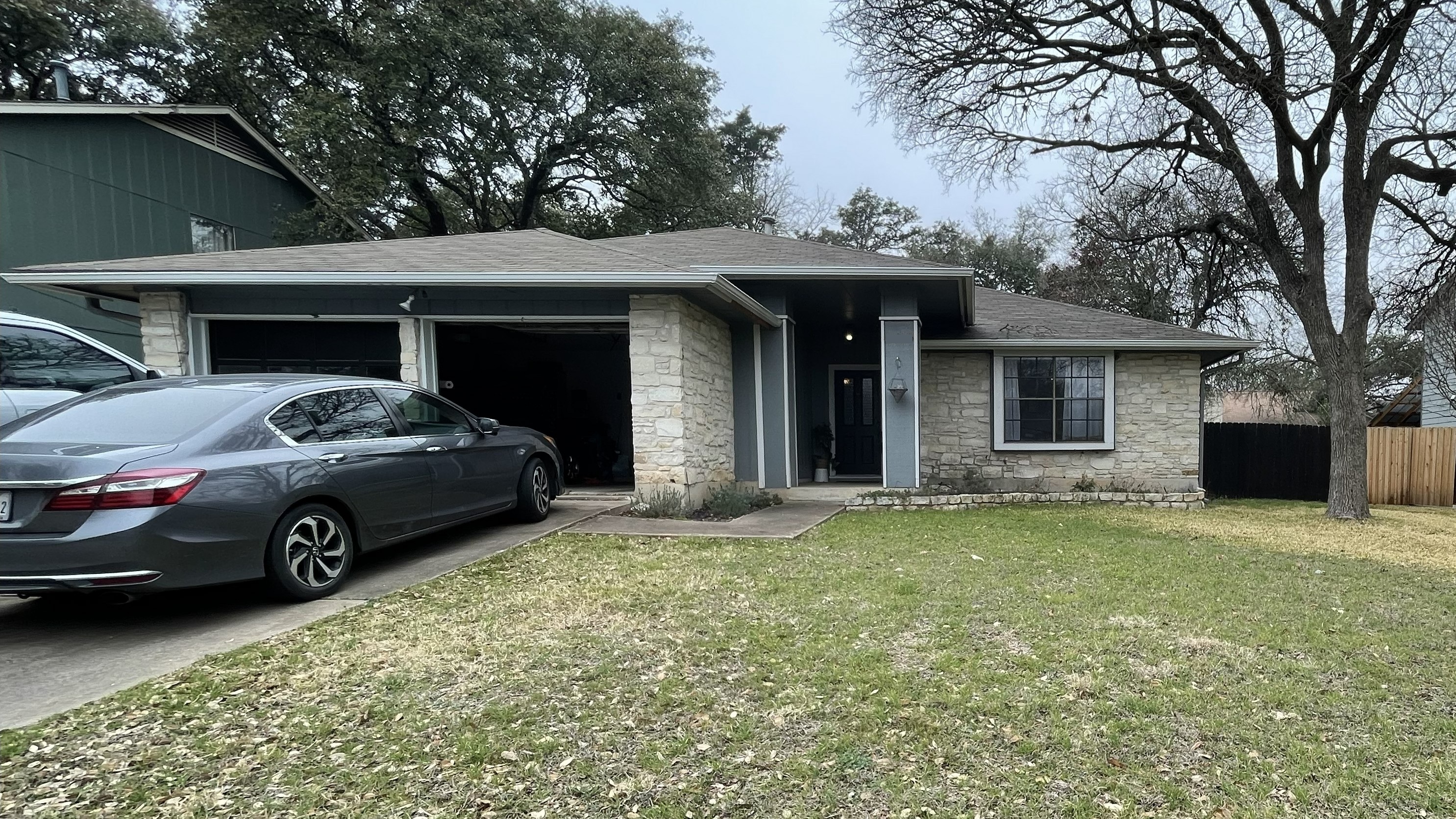 - Front Yard Curb Appeal: The home features a welcoming facade with a Mid-Century Modern influence, characterized by a clean roofline, mixed-material siding, and a structured, low-maintenance landscape design that enhances the home's architecture.