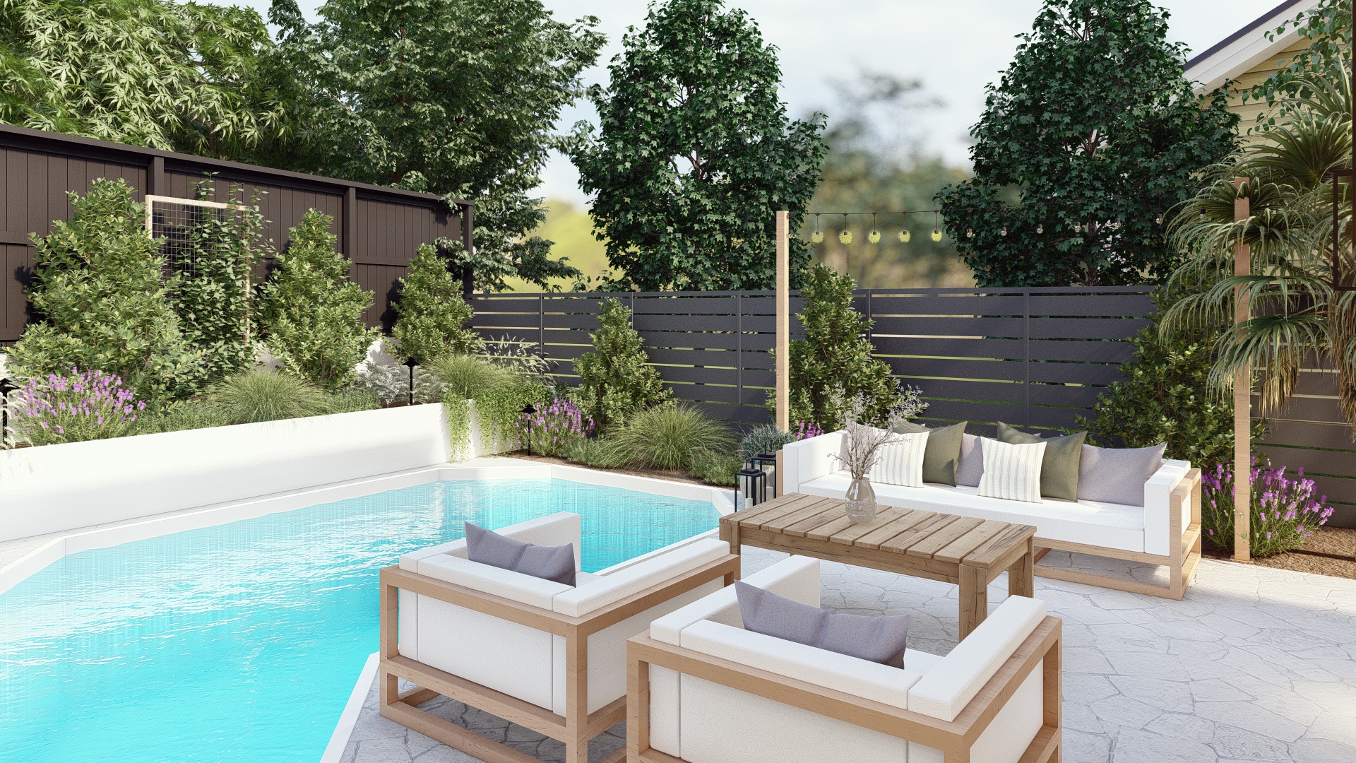Virginia Timeless Outdoor Escape captures the essence of sophisticated outdoor living — a space where modern structure meets enduring charm. This design harmonizes clean architectural lines with soft plantings and a warm color palette, creating a backyard that feels both luxurious and inviting.